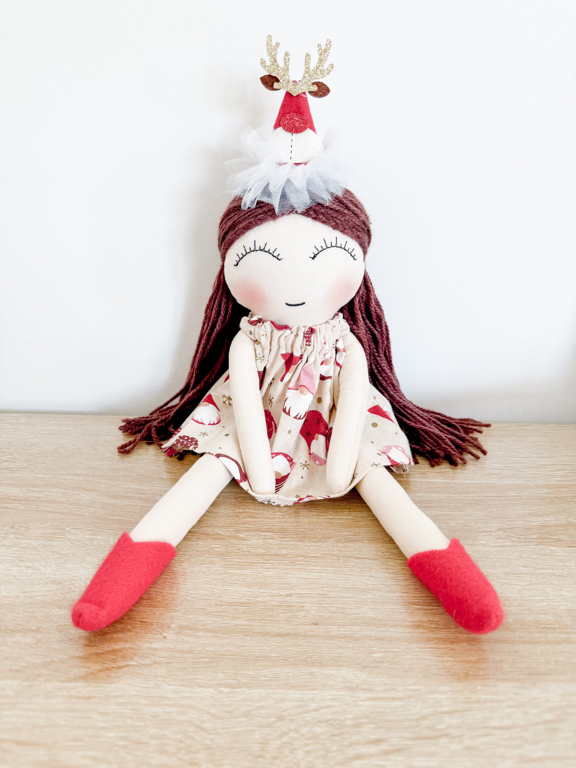 She is made from 100% cotton and filled with hypoallergenic toy filling.