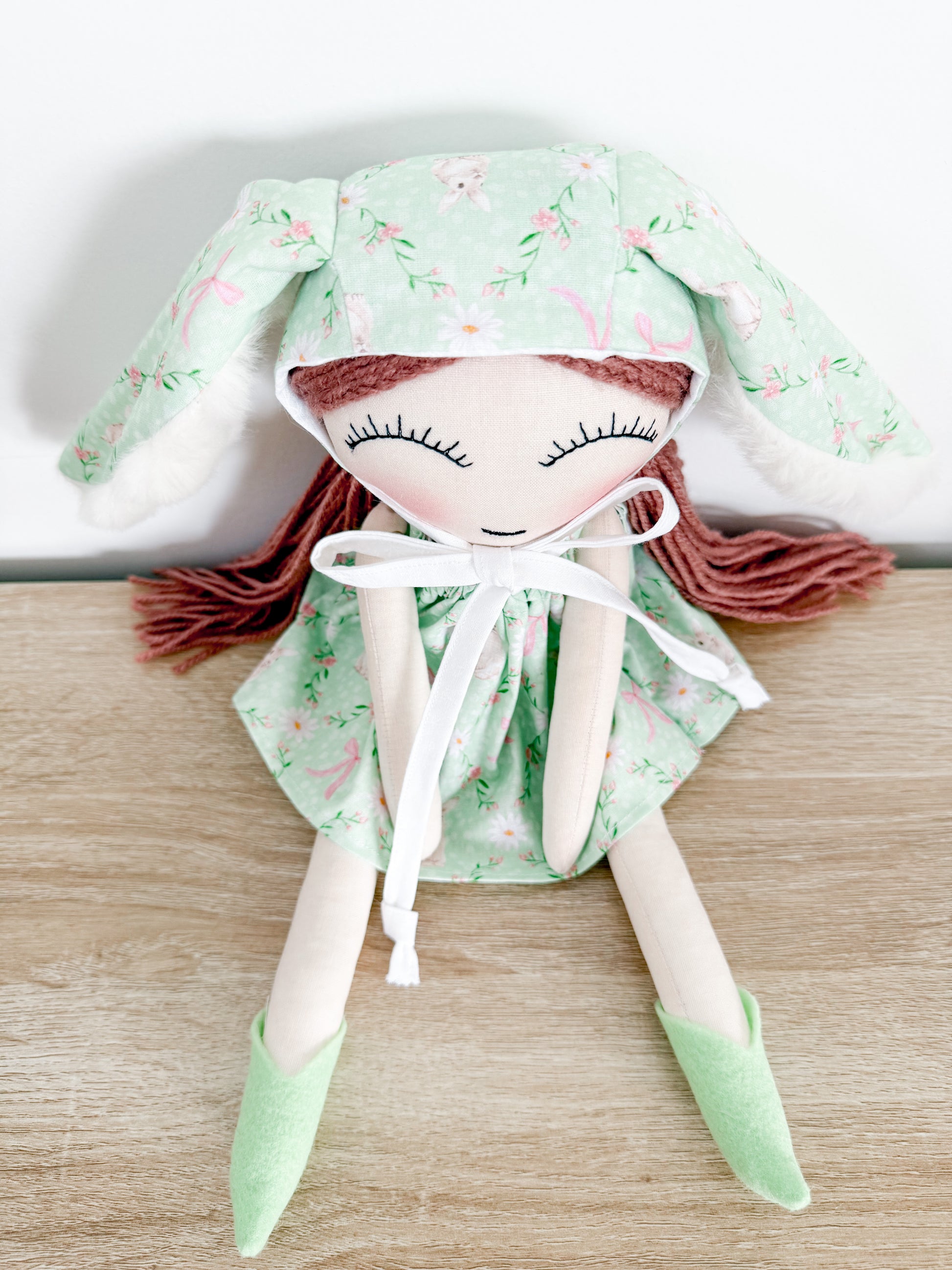 Your new Dolly is approximately 41cm from head to toe. She is made from 100% cotton and filled with hypoallergenic toy filling. Her cotton dress is removable and her gorgeous bonnet can also be removed.