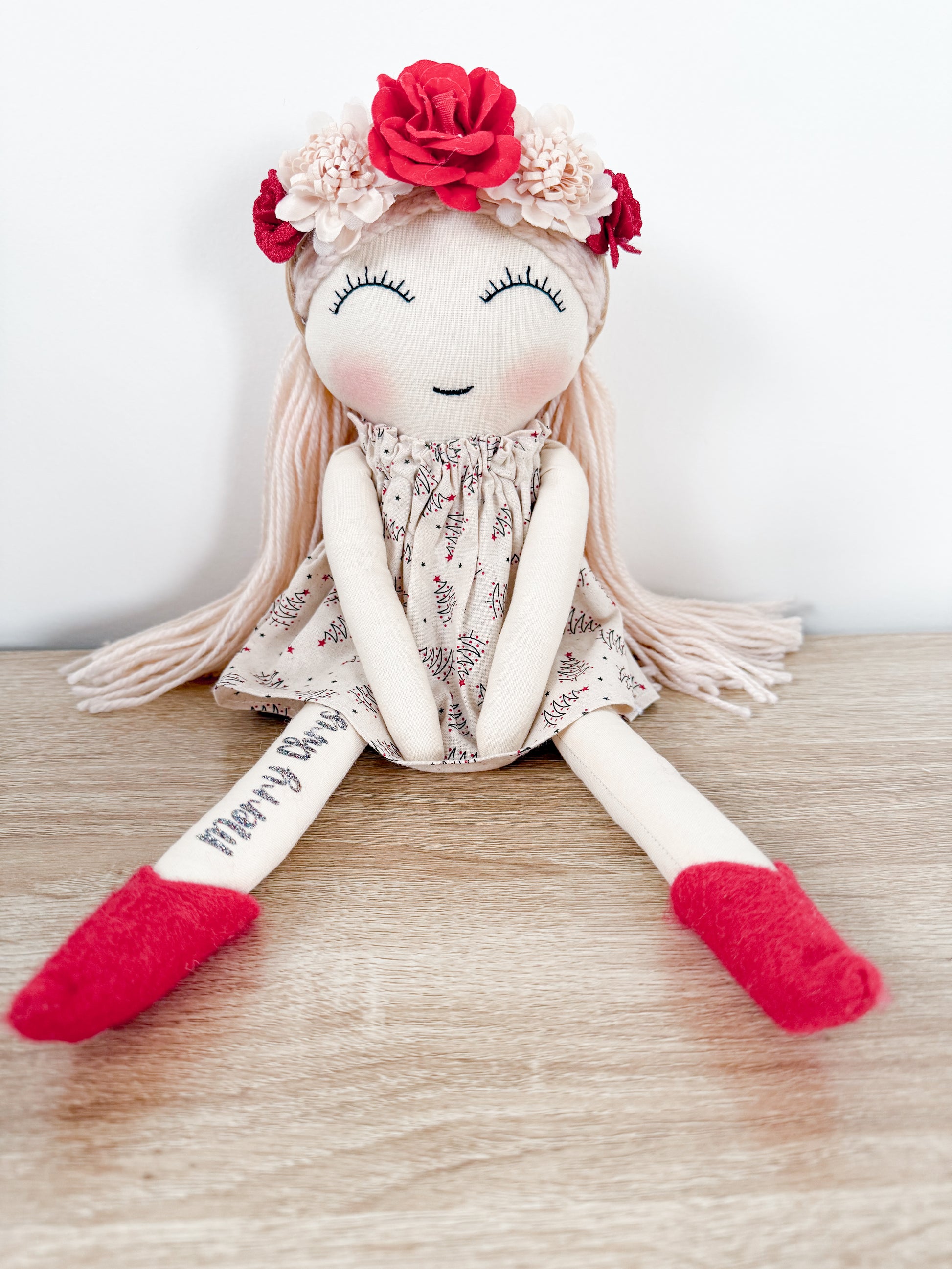• Her headband is removeable however flowers may be glued in.